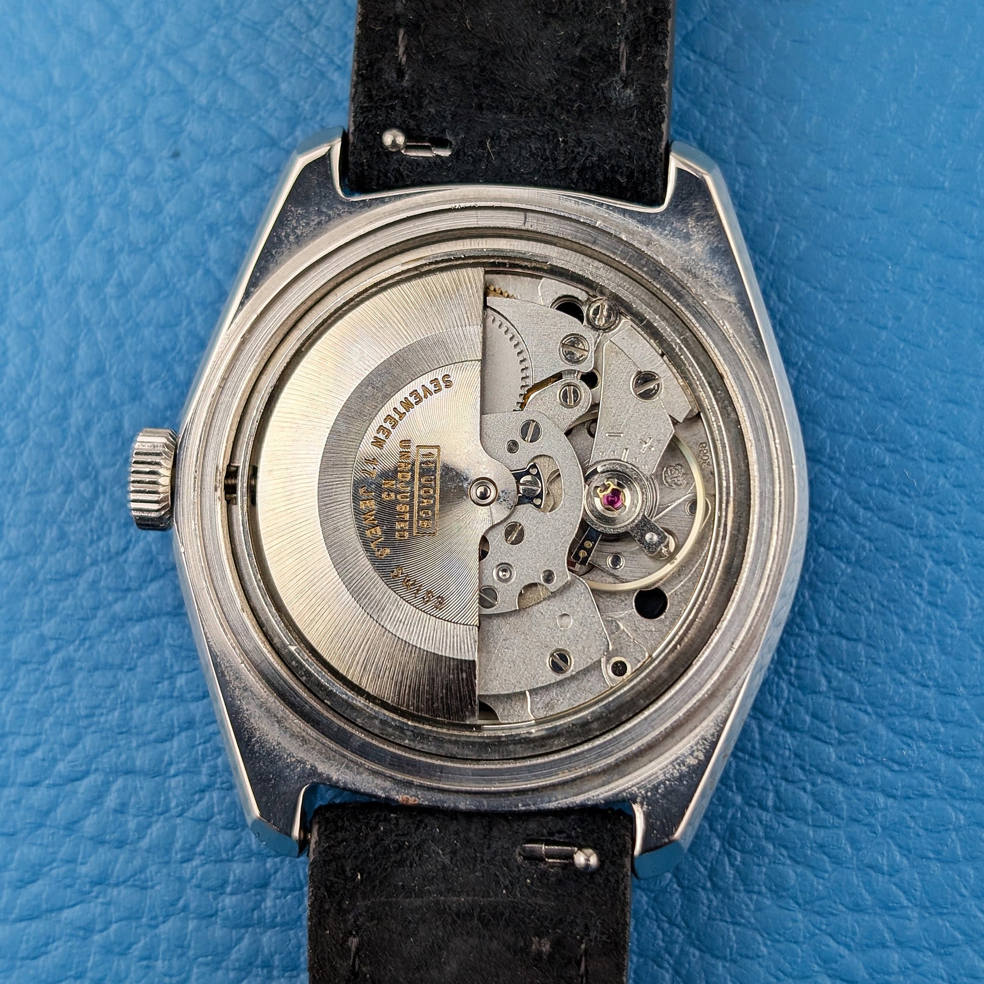 It is powered by an automatic caliber Bulova 11UOACB with 17 jewels. it runs and keeps time. It has not been serviced.