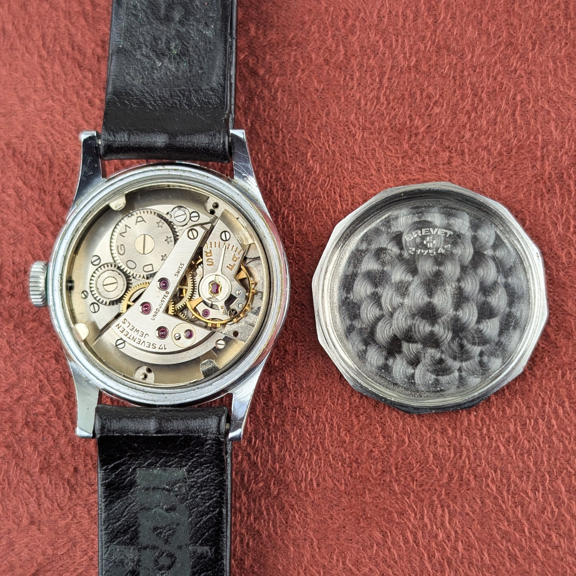 It is powered by a manual wind Swiss made movement with 17 jewels signed Dogma. it runs and keeps time. The service history is unknown.