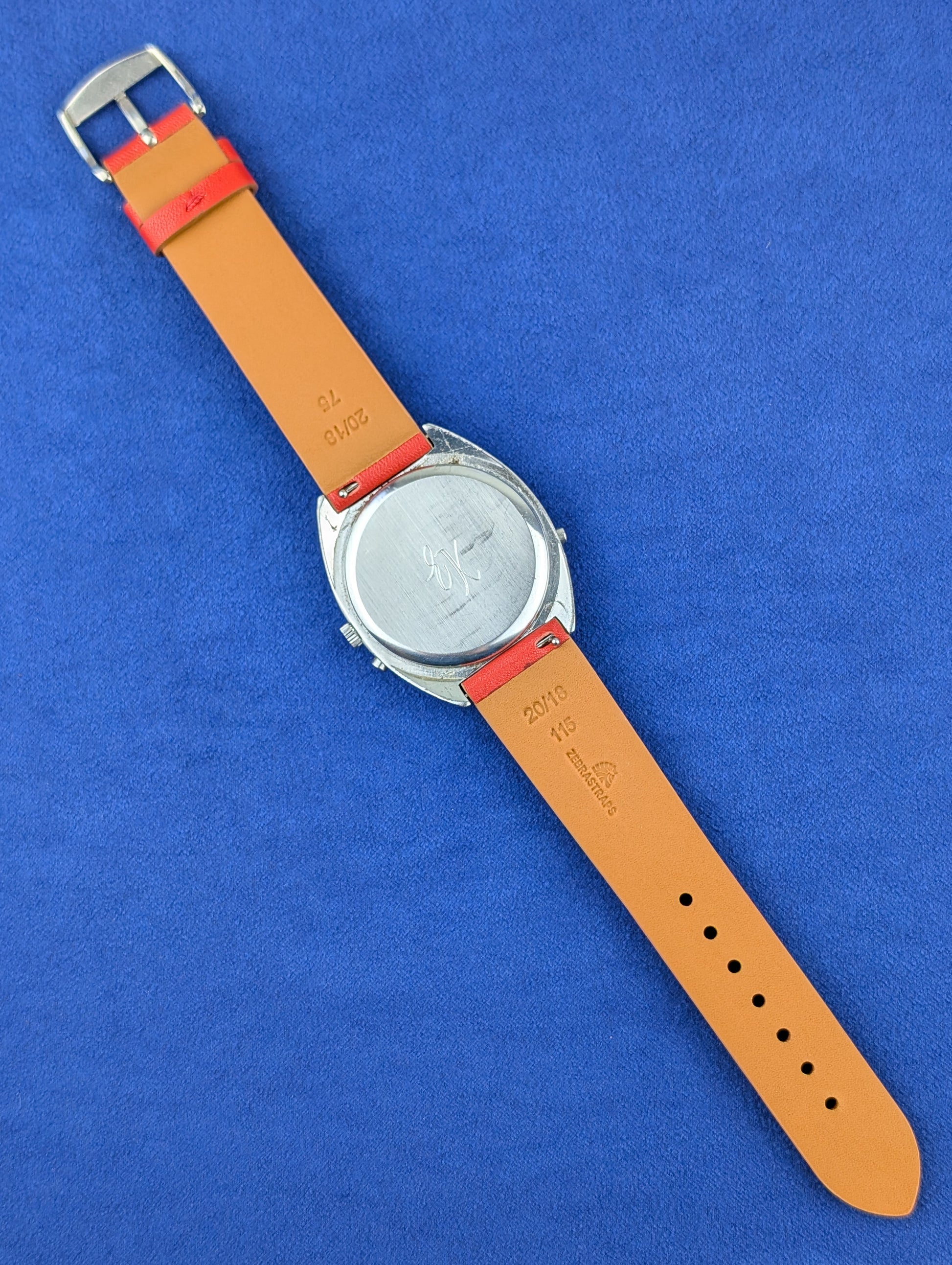 New red strap matching the writing on the dial