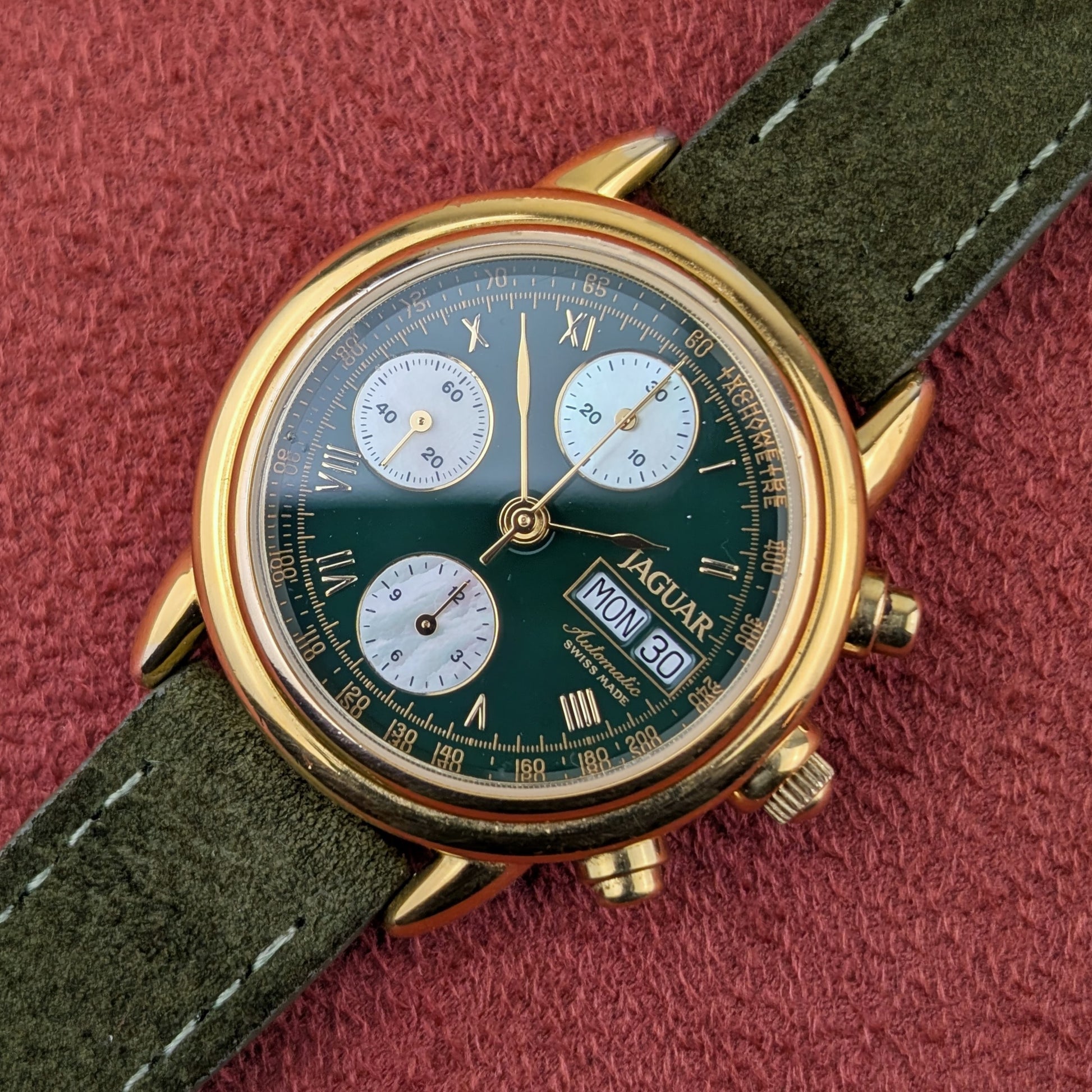 A very nice and uncommon Jaguar automatic chronograph, probably from the 1990s and equipped with the famous Valjoux 7750.