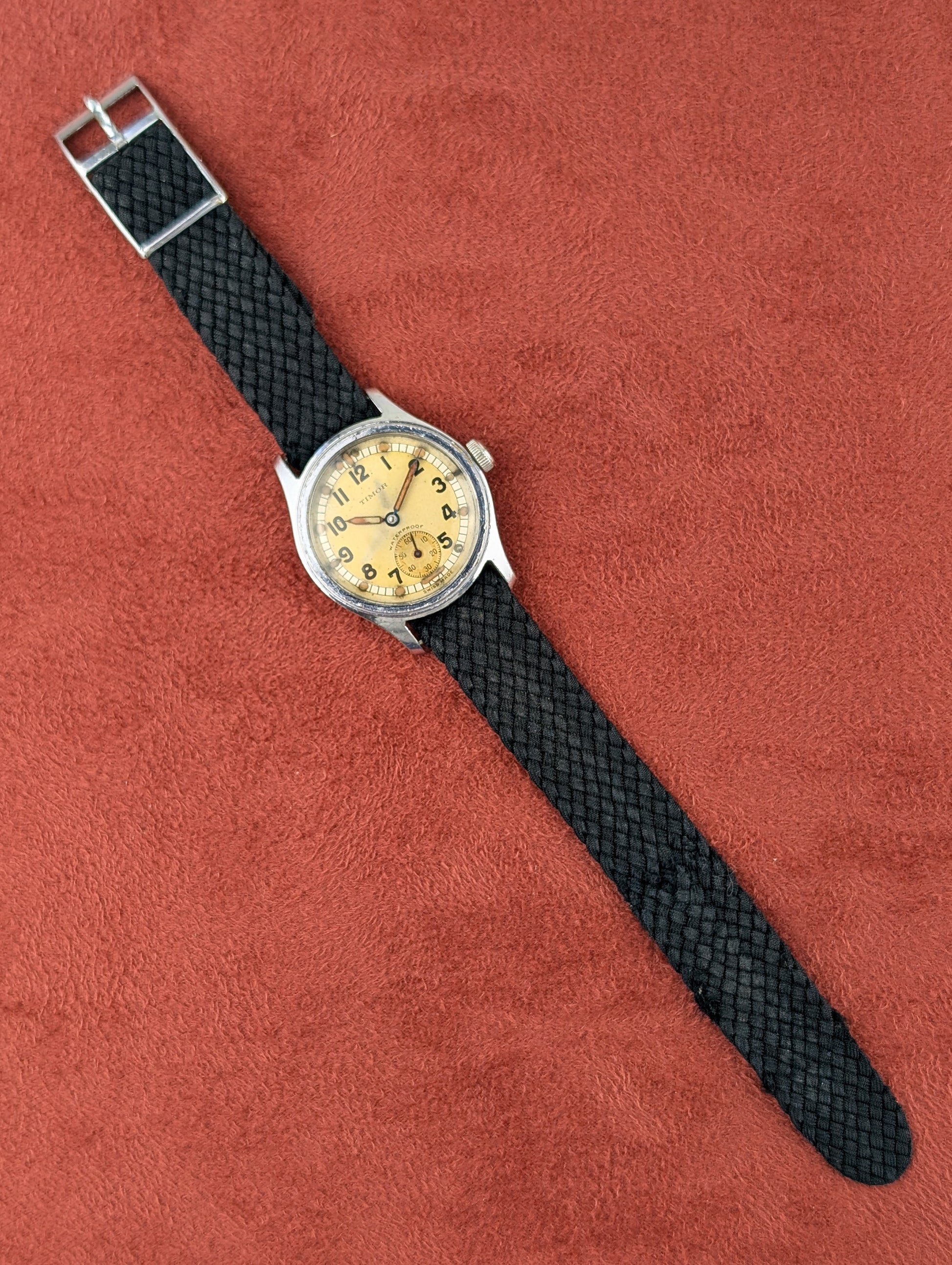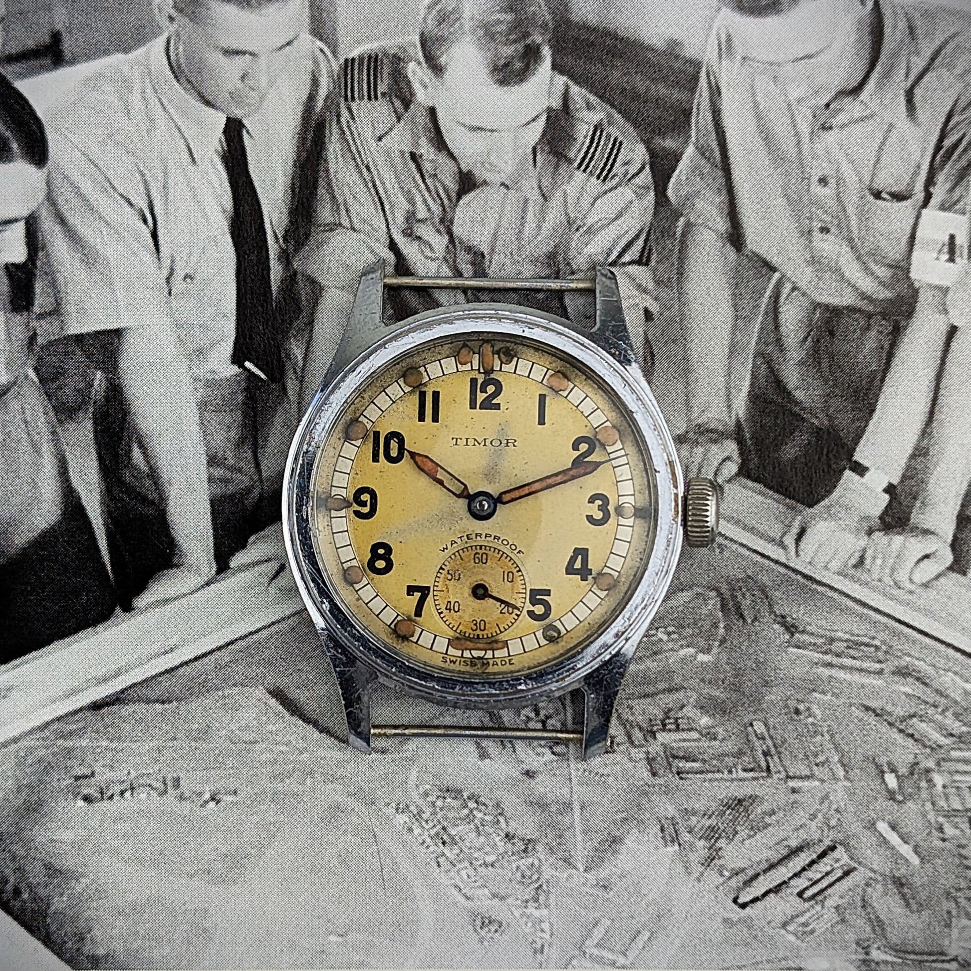 A true British military issued Timor ATP watch from circa 1940 at the beginning of WWII. Unlike the famous W.W.W. “Dirty Dozen” watches, the ATP series were actually used during WWII.